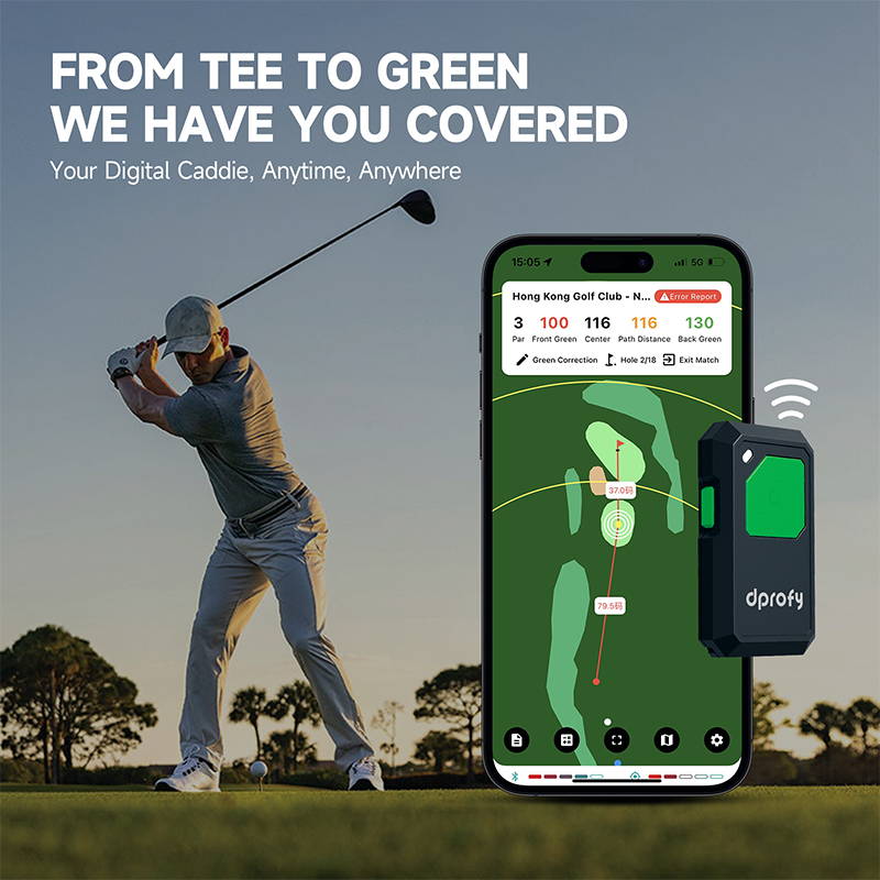 Dprofy’s rangefinder syncs with its mobile app to broadcast voice yardage, even when the screen is off. That means fewer distractions, better battery life, and more focus on the swing—not the settings.